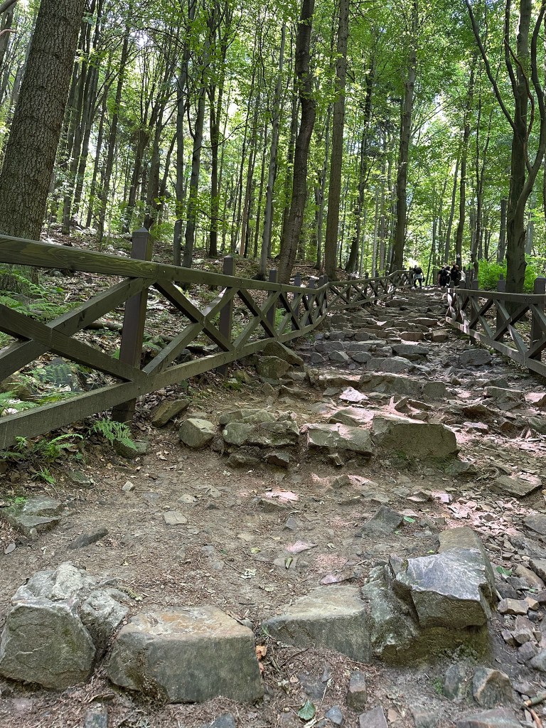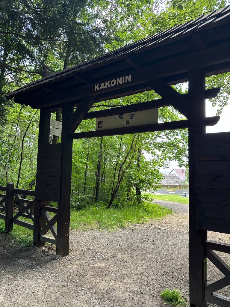Las szumiał, ptaki śpiewały, a my delektowaliśmy się spokojem mimo ruchu na szlaku. Po krótkim postoju przy kapliczce ruszyliśmy w dół, w stronę Kakonina – naszego celu.