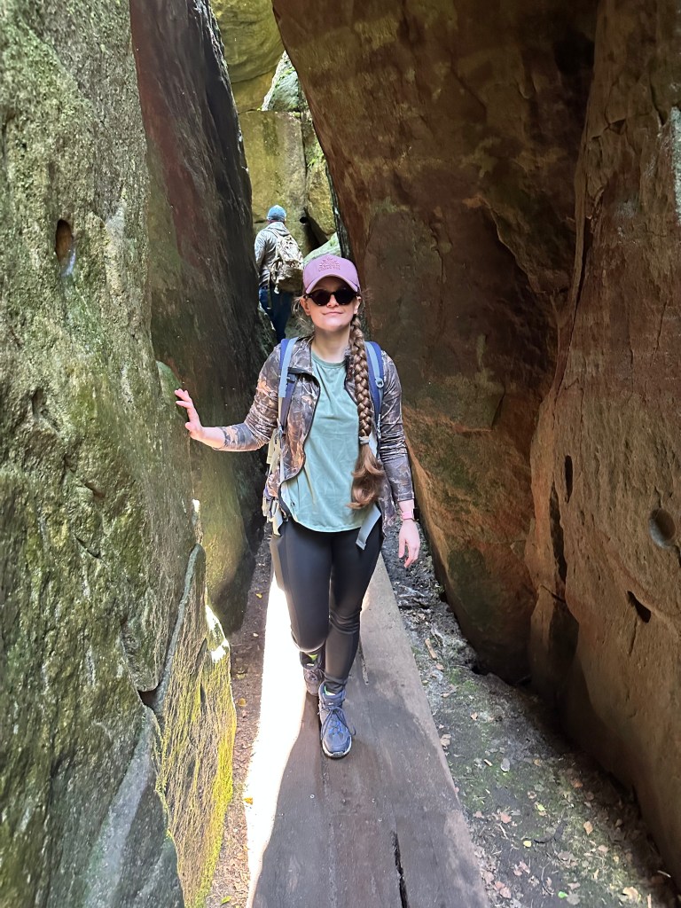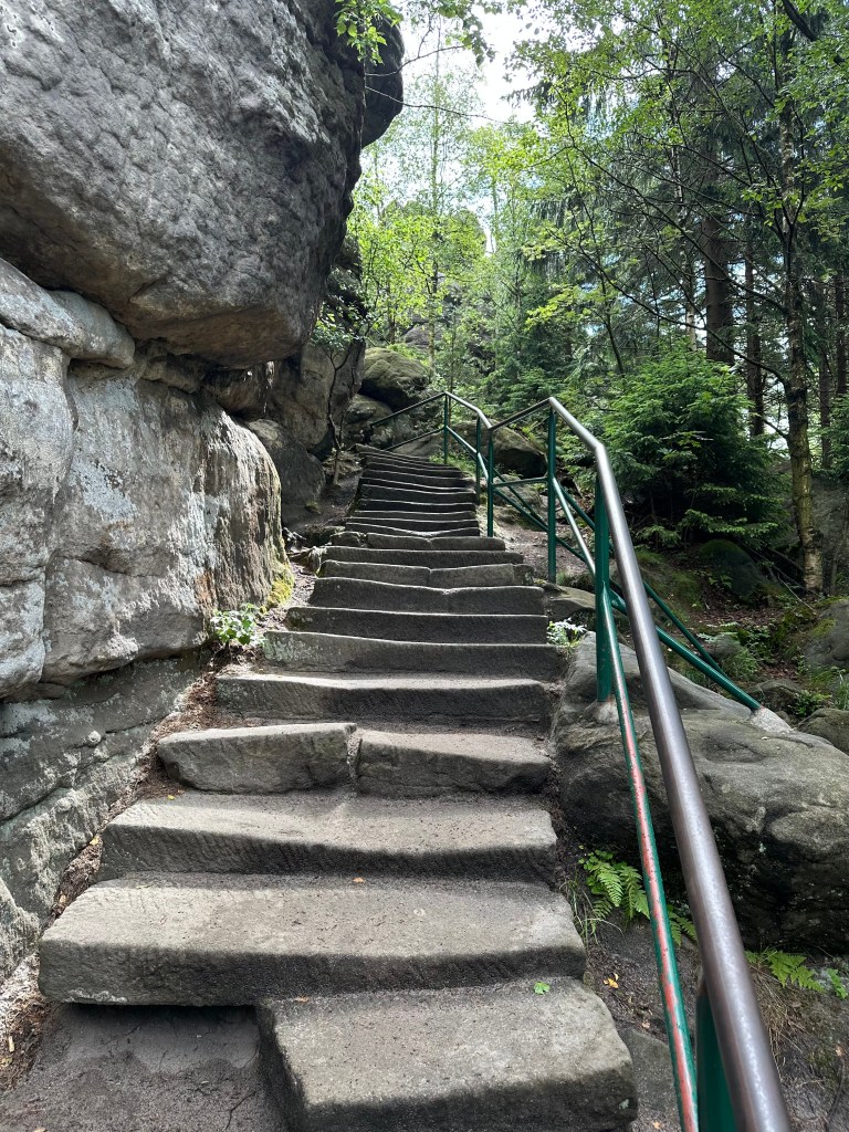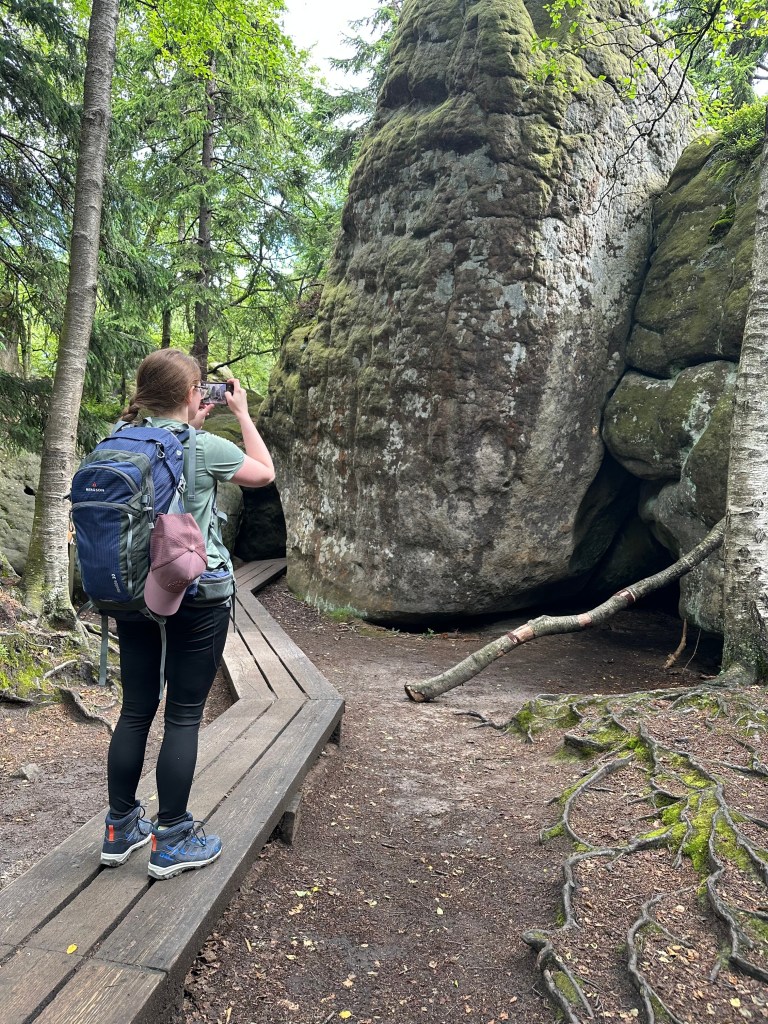 Szczeliniec Wielki zdobyty! Pierwszy raz byliśmy tam rok temu i wiedzieliśmy, że na pewno tu wrócimy. Chociaż dla mnie powrót po stromych schodach wprost na szczyt Szczelińca nie był najprzyjemniejszy.