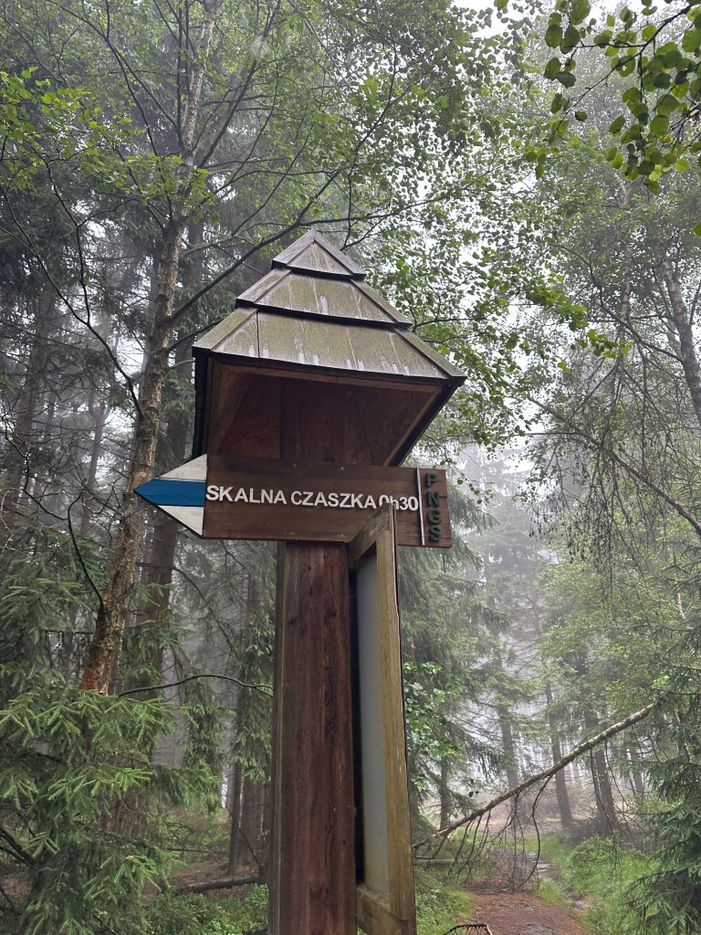 Dotarliśmy do tablicy informacyjnej i zrobiliśmy szybką przerwę na kawę z termosu, deszcz rozgościł się już na dobre.