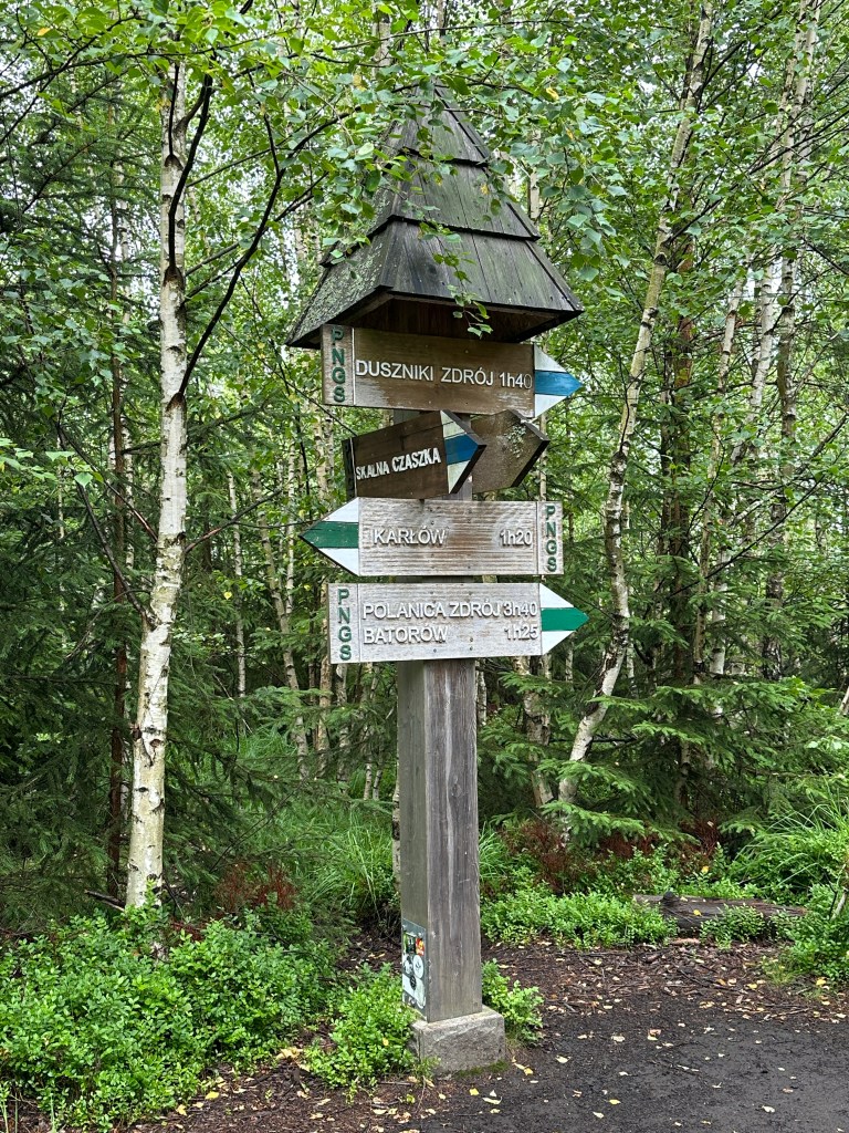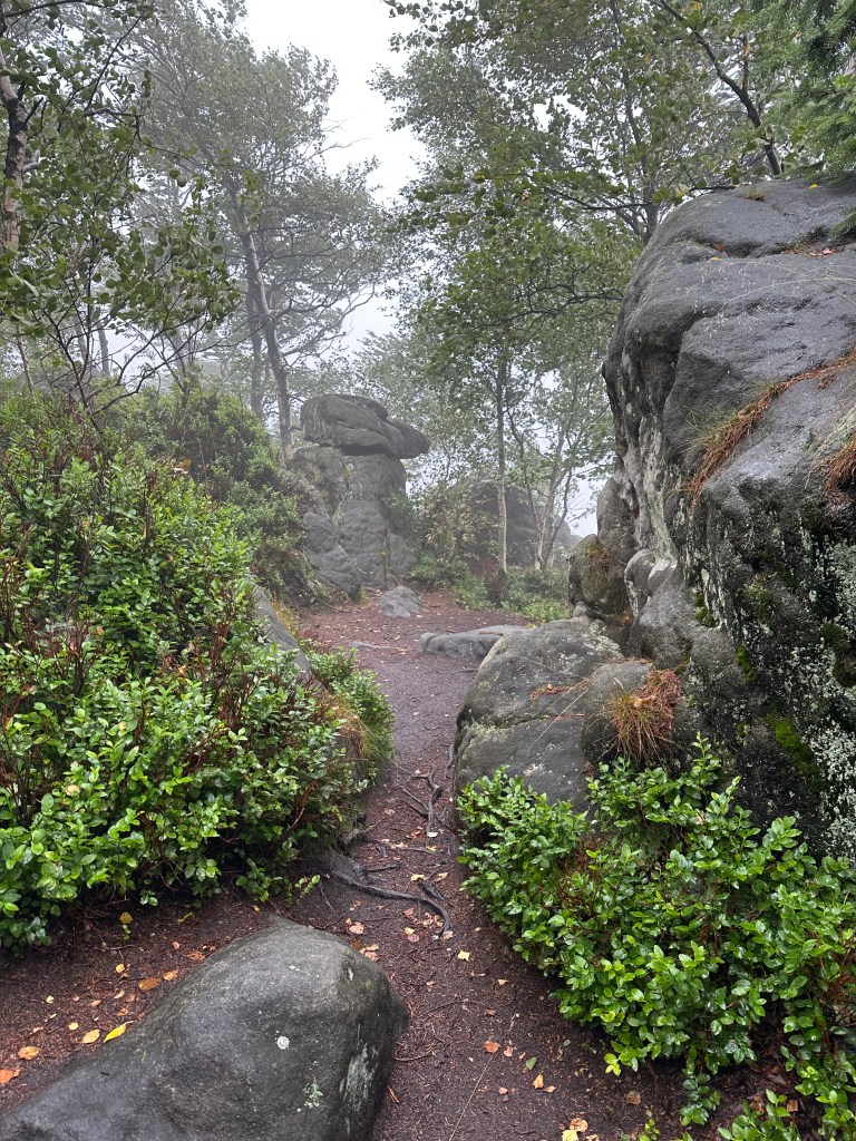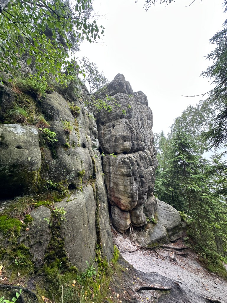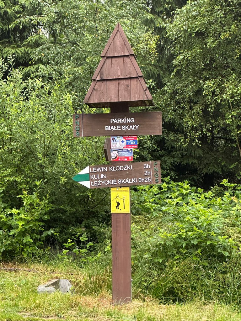 Gdy zobaczyliśmy, że deszczowe chmury spowijają Góry Stołowe wiedzieliśmy, że to idealna pora by odwiedzić Skalną Czaszkę, Skały Puchacza i Białe Skały. Wycieczkę rozpoczęliśmy na parkingu nieopodal Lisiej Przełęczy.