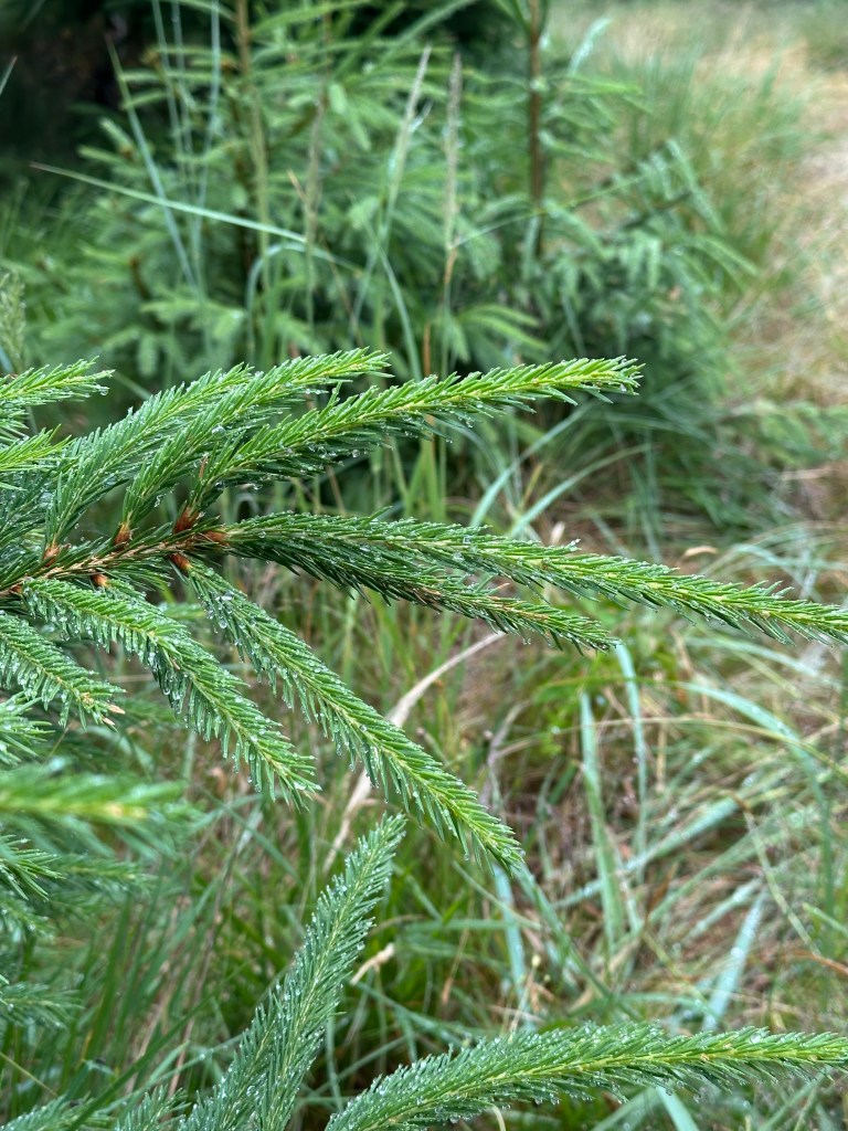- Zmysłowe doznania — zapach mokrego lasu, szelest kropli wśród liści, kontrasty kolorów (soczysta zieleń, brązowa ściółka, biel porostów) były dla nas wyjątkowo intensywne i przyjemne.