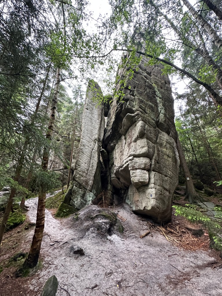 Przeciskaliśmy się przez większe i mniejsze kamienie, które od deszczu były śliskie i zwodnicze, piaszczyste podłoże nie ułatwiało wędrówki. Otaczające nas formacje skalne rozpraszały nasze skupienie, pobudzały naszą wyobraźnię, bo przecież kiedyś było tutaj morze!