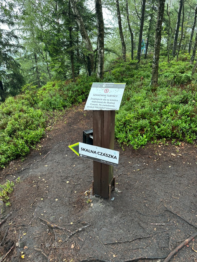 Żeby podziwiać Skalną Czaszkę trzeba było pokonać strome schody. Sama Czaszka, choć na zdjęciach wygląda spektakularnie, to na żywo ledwie widać jej zarys. Pnie drzew częściowo przysłaniały jej kształt, a niełatwo było podejść bliżej niej, ze względu na stromy i śliski teren. Mimo to, otaczająca ją mgła nadawała miejscu tajemniczy charakter.