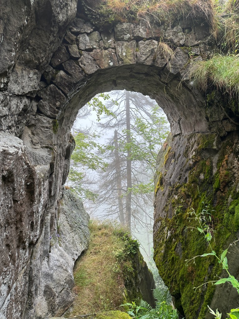 Na górze zamiast widoku czekała na nas tylko biała ściana chmury… Ruiny fortu same w sobie nie zrobiły na nas większego wrażenia.