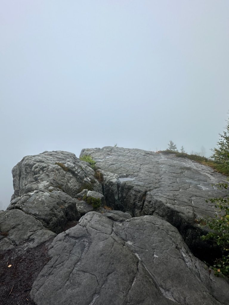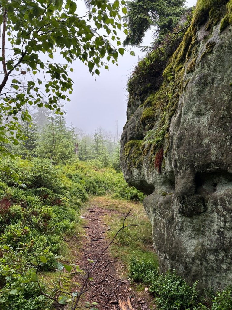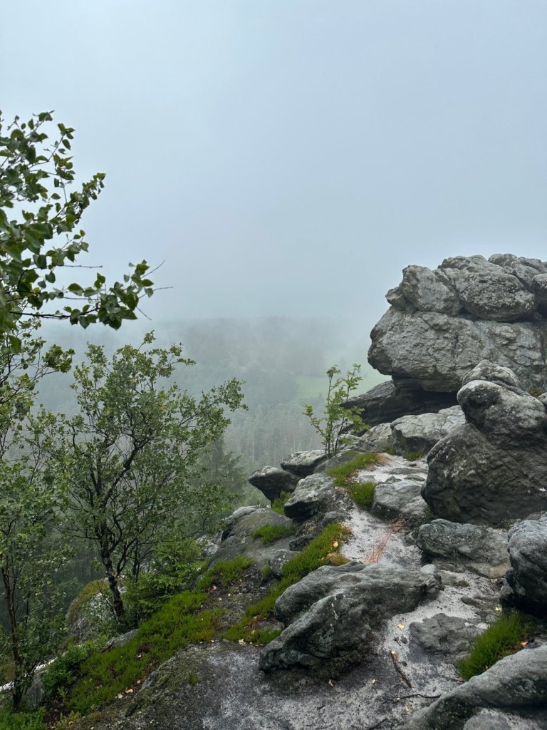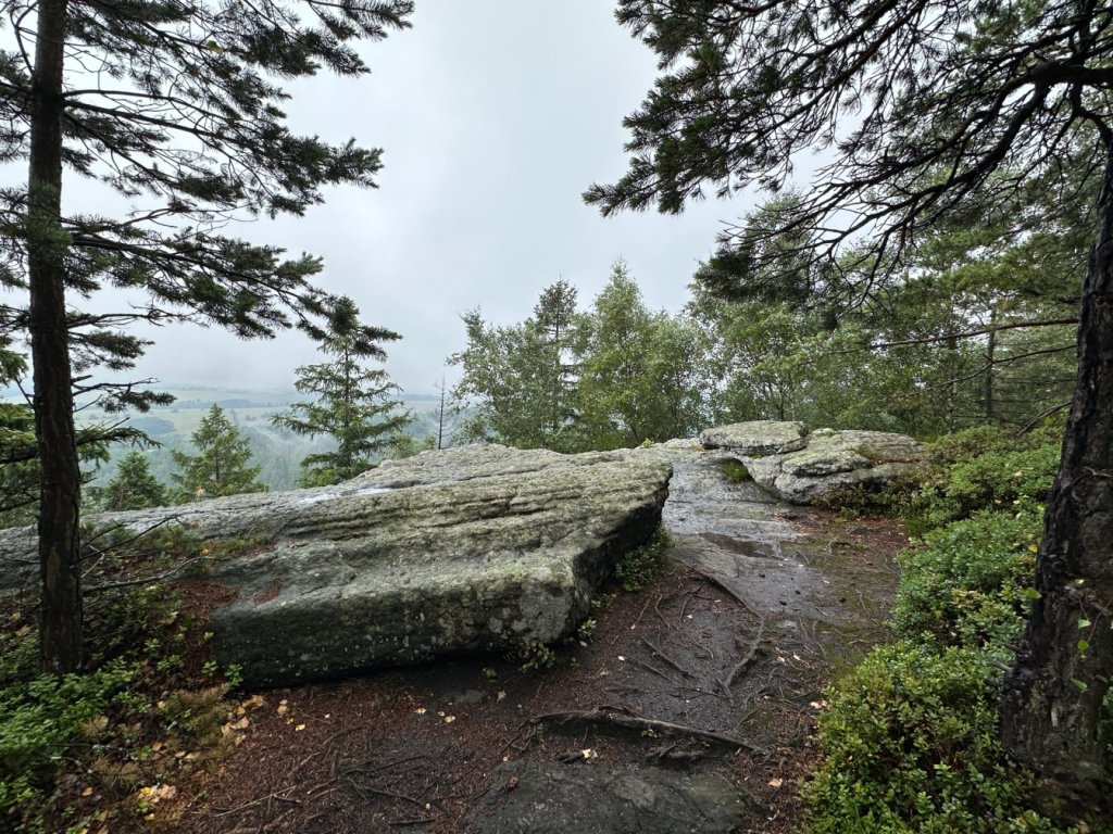 Zaliczyliśmy kolejną wychodnie skalną stanowiącą świetny punkt widokowy… Z którego poza mgłą niczego nie było widać.