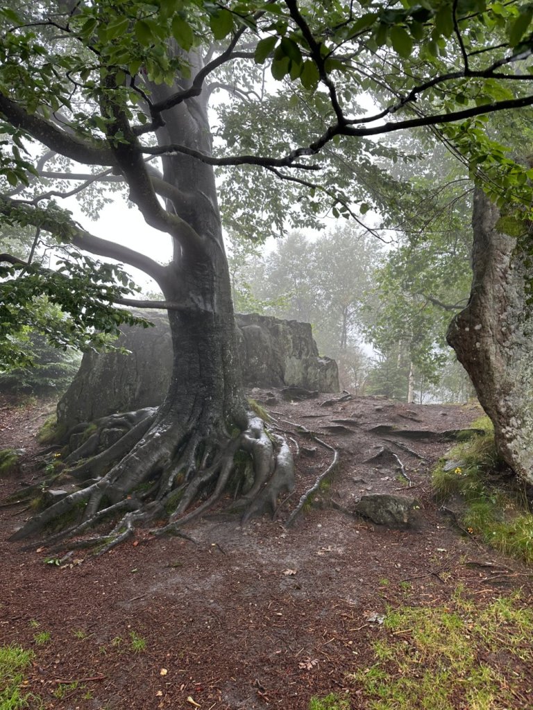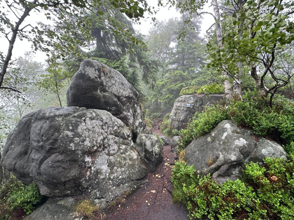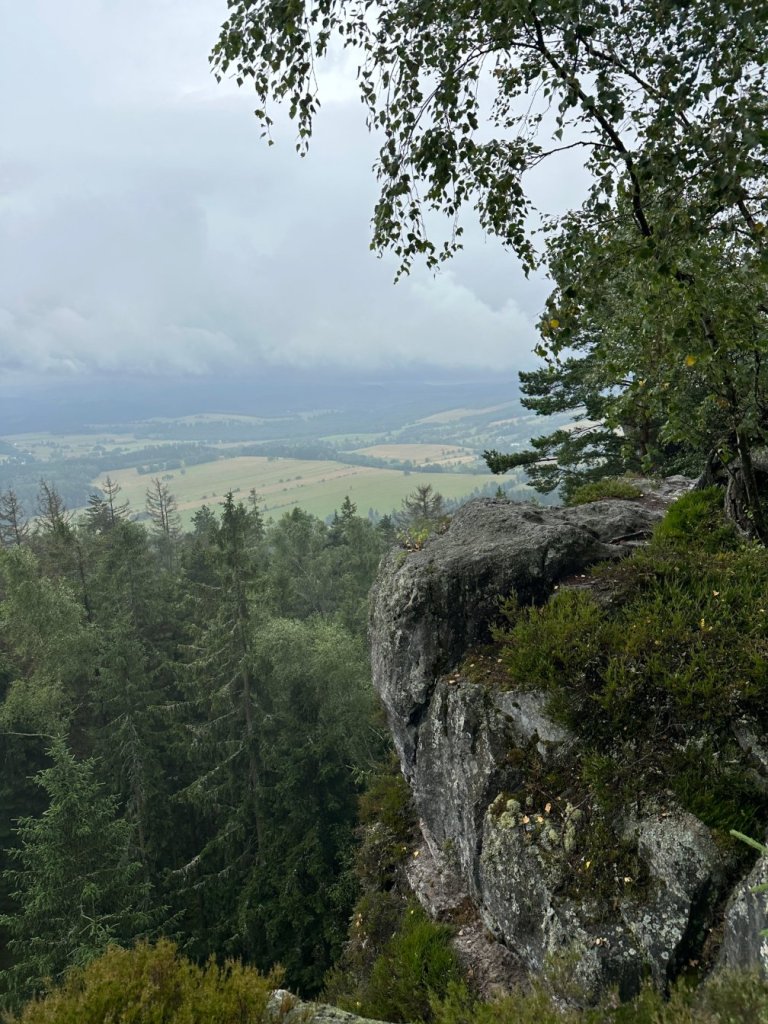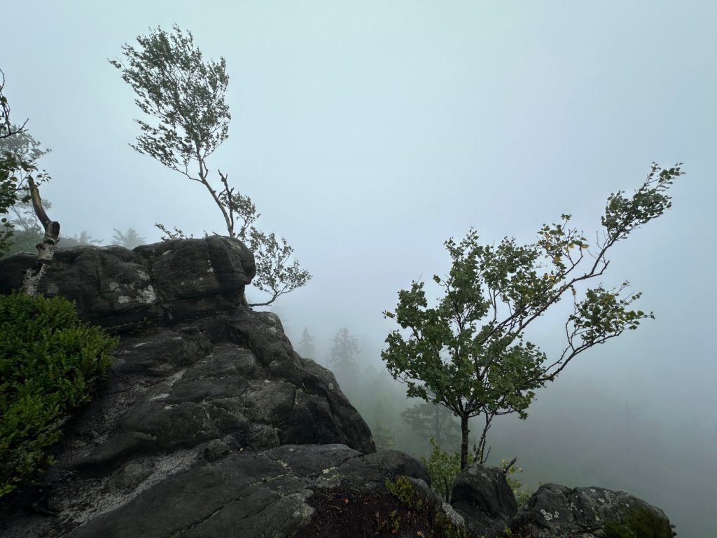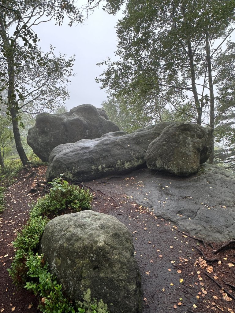 Zaliczyliśmy kolejną wychodnie skalną stanowiącą świetny punkt widokowy… Z którego poza mgłą niczego nie było widać.