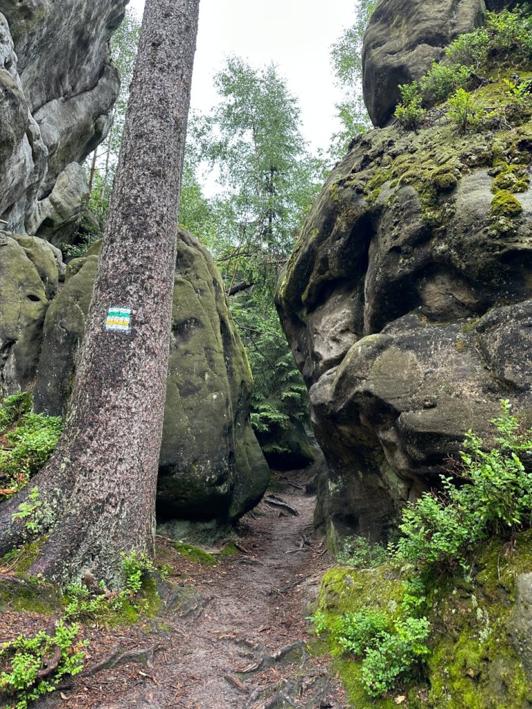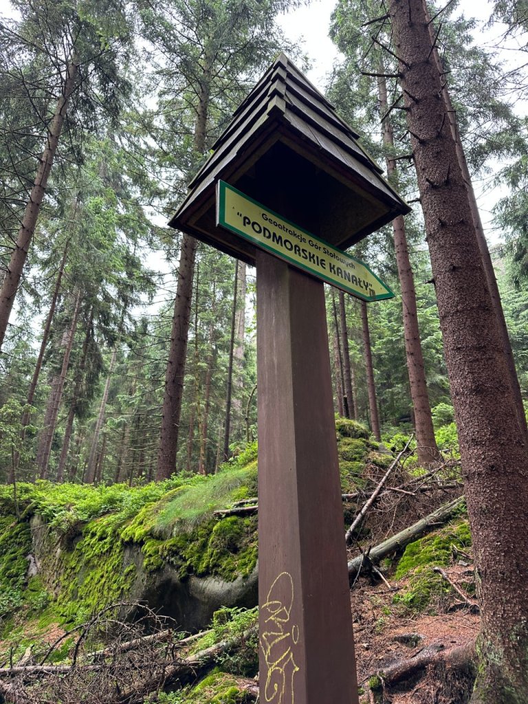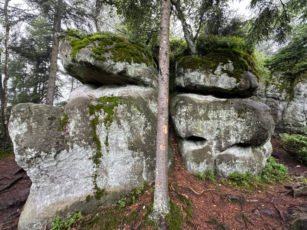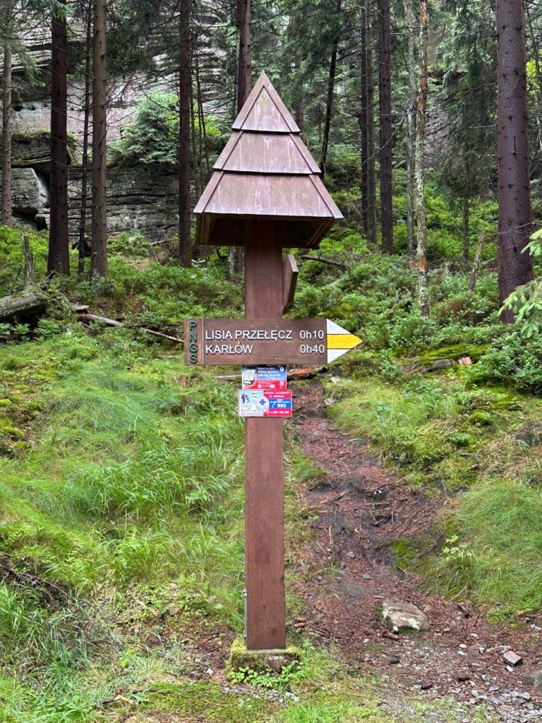 Gdy zobaczyliśmy, że deszczowe chmury spowijają Góry Stołowe wiedzieliśmy, że to idealna pora by odwiedzić Skalną Czaszkę, Skały Puchacza i Białe Skały. Wycieczkę rozpoczęliśmy na parkingu nieopodal Lisiej Przełęczy.
