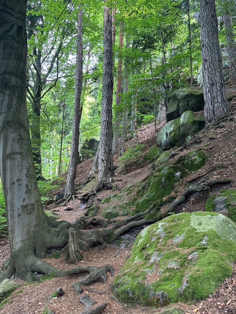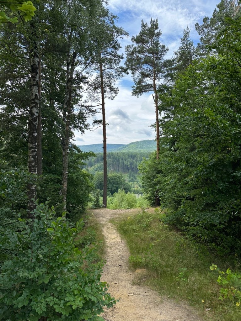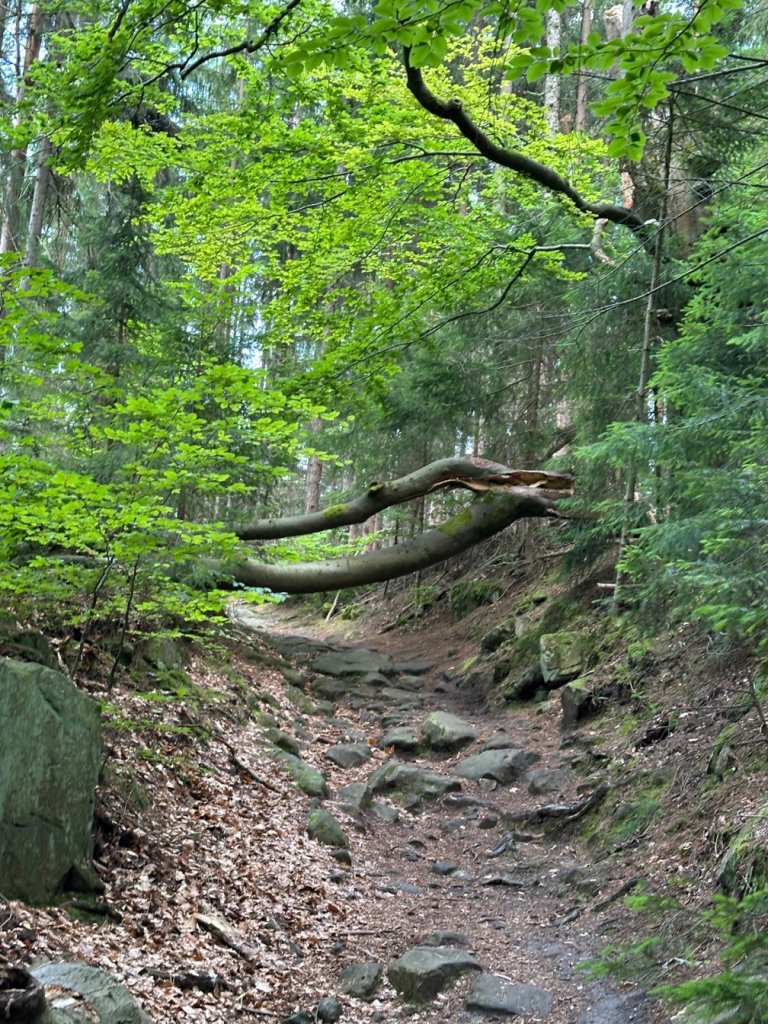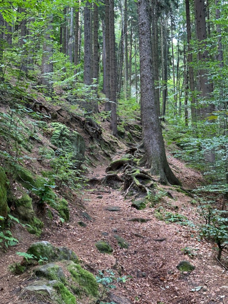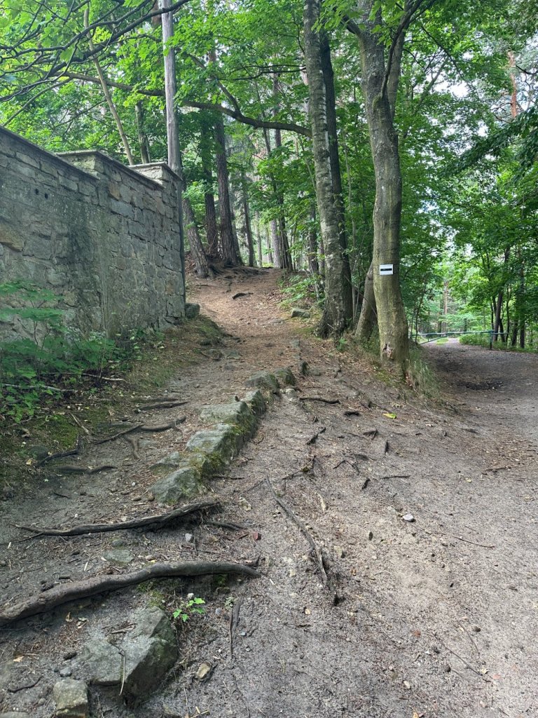 Szybko okazało się, że to nie będzie zwykły spacer: las przywitał nas stromym podejściem, które już od pierwszych kroków dawało znać w nogach. Stromo w górę, samym brzegiem zbocza. Dokładnie tak męcząco jak to zapamiętaliśmy.