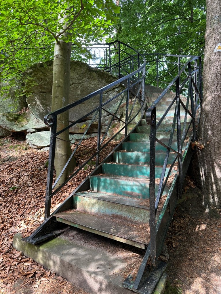 Punkt widokowy zaczynał się przerdzewiałymi schodami, natomiast wyżej okazało się, że dalsza część schodów i podestu jest już wyremontowana.