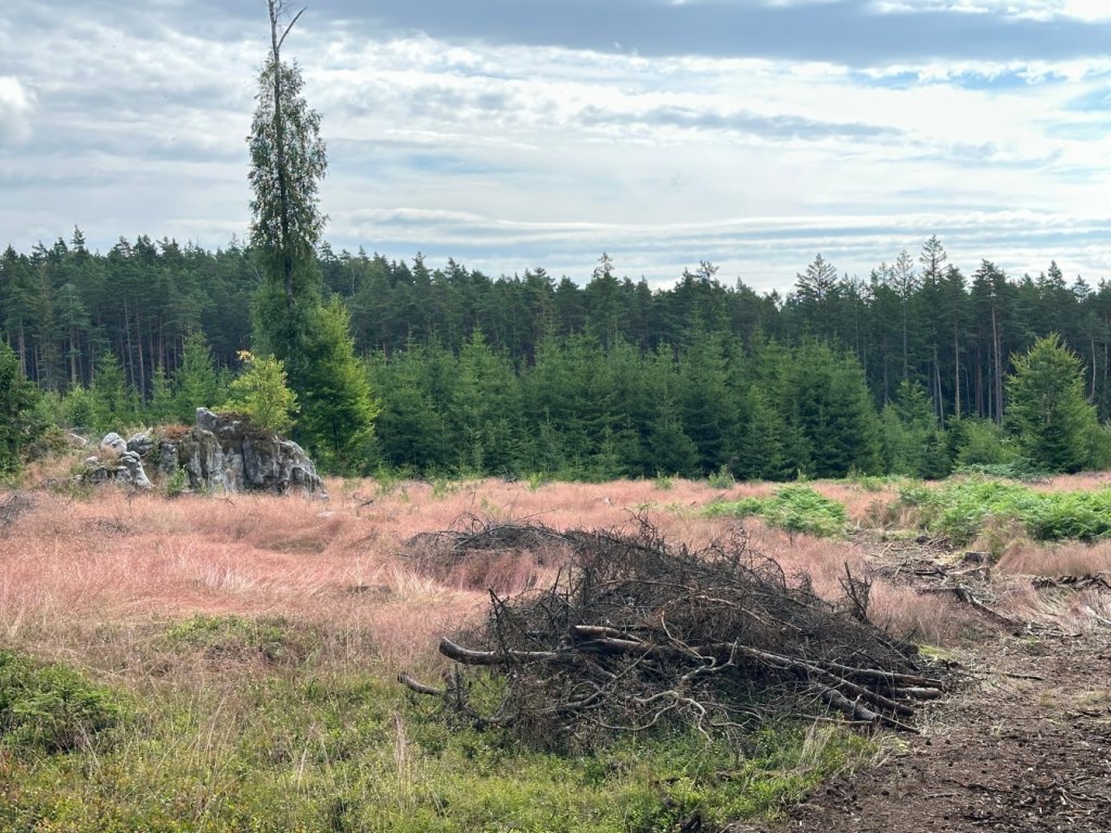 Wróciliśmy na szlak, który właśnie wiódł poprzez teren martwego lasu.