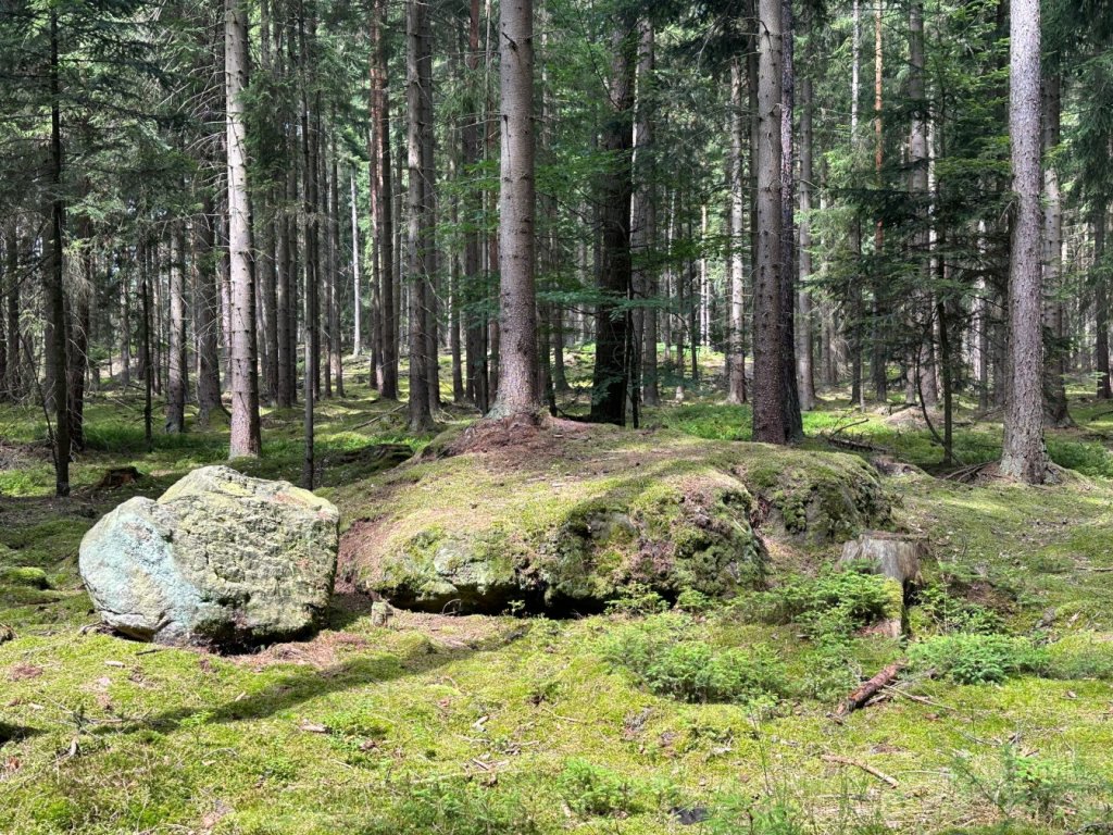 Minęliśmy wysoką formację skalną ukrytą głęboko w drzewach, ledwie widoczną.
