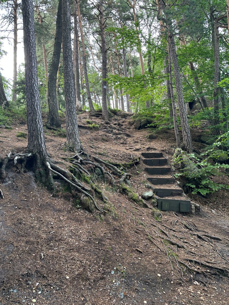 Szybko okazało się, że to nie będzie zwykły spacer: las przywitał nas stromym podejściem, które już od pierwszych kroków dawało znać w nogach. Stromo w górę, samym brzegiem zbocza. Dokładnie tak męcząco jak to zapamiętaliśmy.