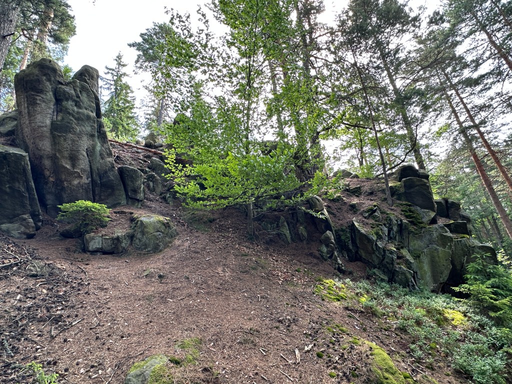 Za nim skręciliśmy dalej w las aż dotarliśmy do Garncarza – kolejnej skałki i powędrowaliśmy ostro w dół zielonym szlakiem.