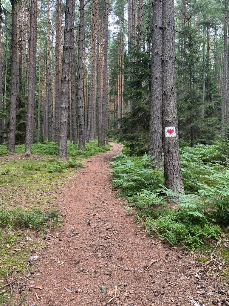 Wracaliśmy do wiaty szlakiem czerwonym, oznaczonym serduszkiem, większość szlaku wiodła ostro pod górę.