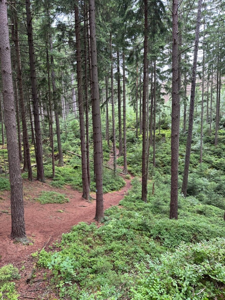 Niebieski szlak na Radkowskie Skały okazał się lekkim, przyjemnym spacerem – szerokie ścieżki, łagodne podejścia, mnóstwo przestrzeni na odpoczynek i podziwianie krajobrazu.