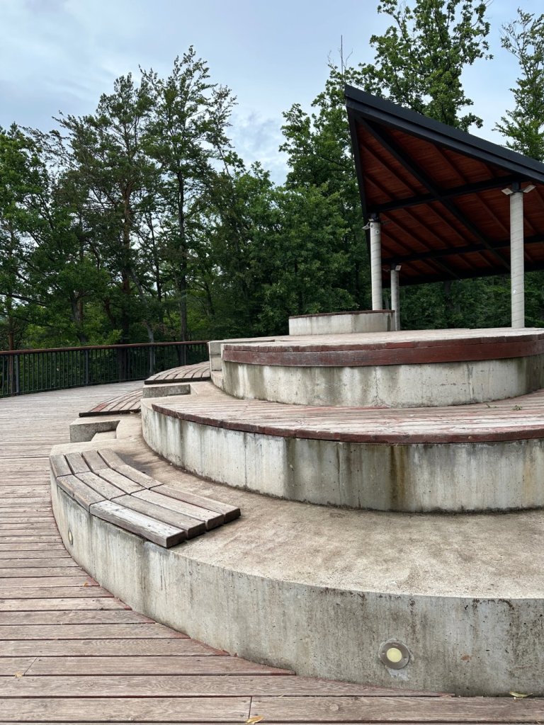 - Taras widokowy z częściowym zadaszeniem, ławeczki, stoły piknikowe