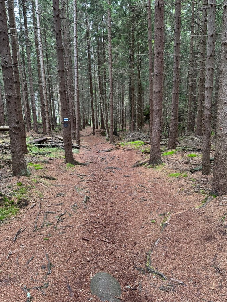 Niebieski szlak na Radkowskie Skały okazał się lekkim, przyjemnym spacerem – szerokie ścieżki, łagodne podejścia, mnóstwo przestrzeni na odpoczynek i podziwianie krajobrazu.