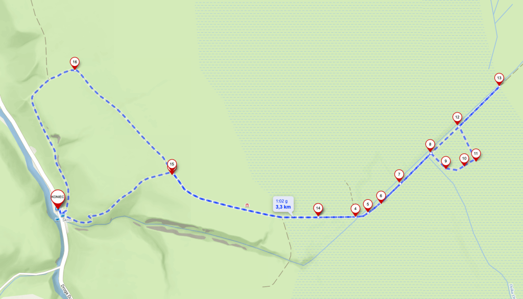 Trasa: Szlak zielony – Ścieżka dydaktyczna – Kładka przez torfowisko – Powrót tą samą drogą. Ostatni strony kawałek można zastąpić ścieżką rowerową która jest znacznie łatwiejsza do zejścia