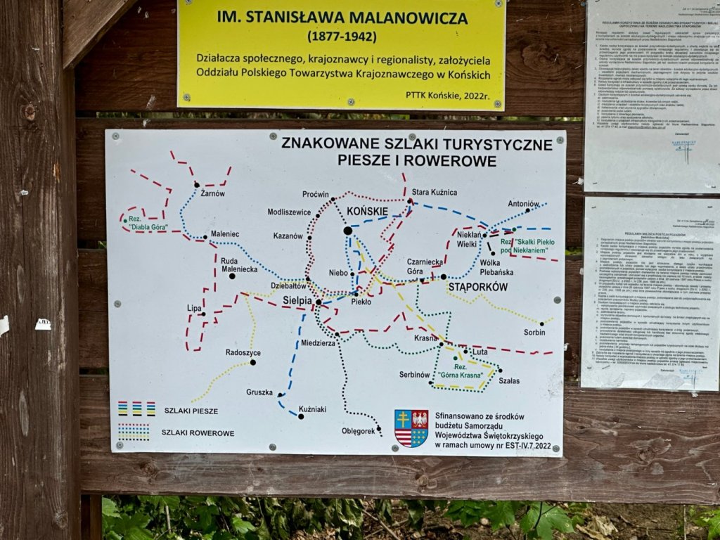 - Stoły piknikowe i ławeczki w kilku punktach trasy wraz ze śmietnikami