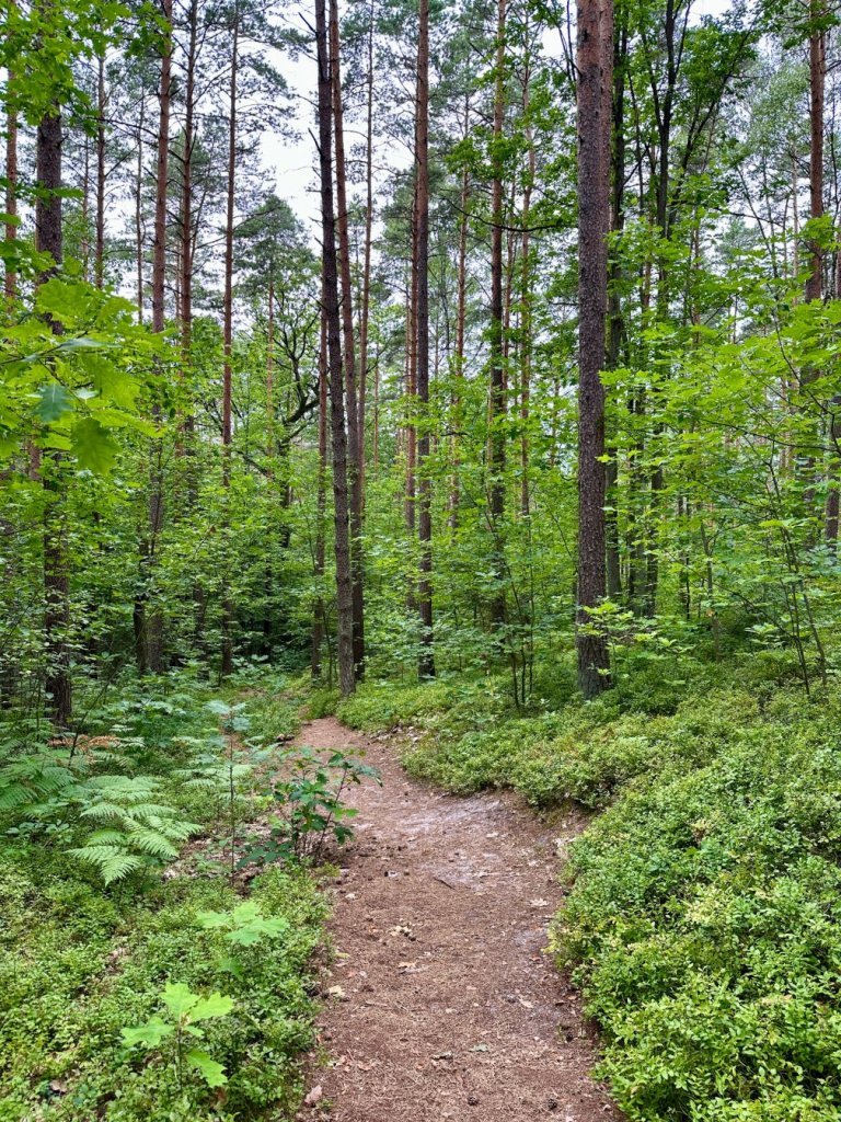 Idziemy coraz bardziej pod górę, po korzeniach drzew. Za chwilę zejście w dół – z intensywnym zapachem ściółki. Dookoła pełno jagód i szyszek. Zaraz potem zaliczamy kolejne ostre podejście.