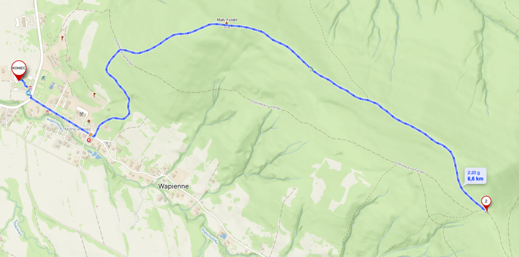 Trasa: Parking (ogrody Marysieńki) – Kierujemy się szlakiem zielonym biegnącym wzdłuż drogi wyłożonej kostką brukową – Skręcamy w lewo za amfiteatrem – Idziemy cały czas pod górę zgodnie z oznaczeniami szlaku zielonego – Gdy miniemy szczyt Małego Ferdla trasa trochę się wypłaszcza – Dochodzimy do wieży widokowej – Powrót tą samą drogą – Parking