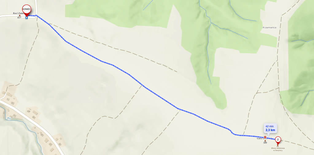 Sobota, popołudnie. Pogoda dziś kapryśna – burza wygoniła nas z drogi na Ferdel, więc szukamy alternatywy. Kolano po kontuzji spowodowanej wizytą w Gagatach Sołtykowskich wciąż ogranicza dystans, wybór pada na niewielką, prostą trasę – wieżę widokową w Desznicy.