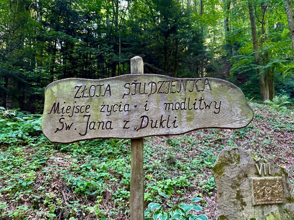 Źródło św. Jana z Dukli – to tutaj, według tabliczki, zaczynał swoją pustelniczą działalność. Obok kapliczka przystrojona kwiatami, duży ołtarz polowy w drewnianej wiacie i ławki – część już mocno zniszczona, część wciąż w dobrym stanie.