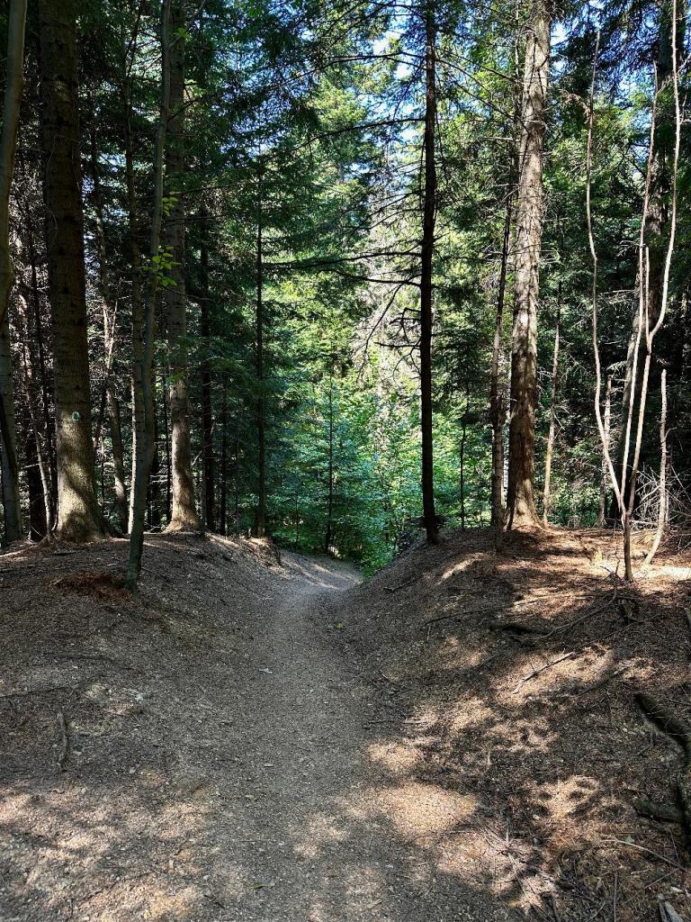 - Zacieniona, leśna trasa – przyjemny chłód mimo upału