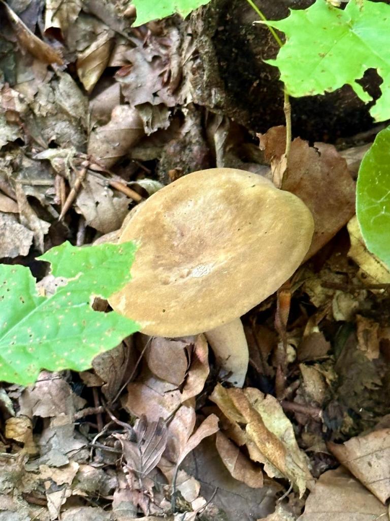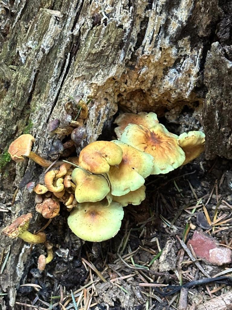 Zaczynamy podejście. Pierwsze oznaczenia ścieżki przyrodniczej – zielone drzewko na białym tle – są widoczne, choć oznaczenia żółtego szlaku jeszcze brak. Las pnie się w górę, a my co chwilę zatrzymujemy się, by podziwiać rosnące tu licznie grzyby.