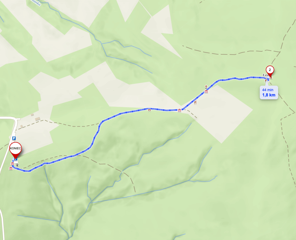 - Łączka w połowie trasy – Food trucki. Dostępne są ławeczki i stoliki a także huśtawka.