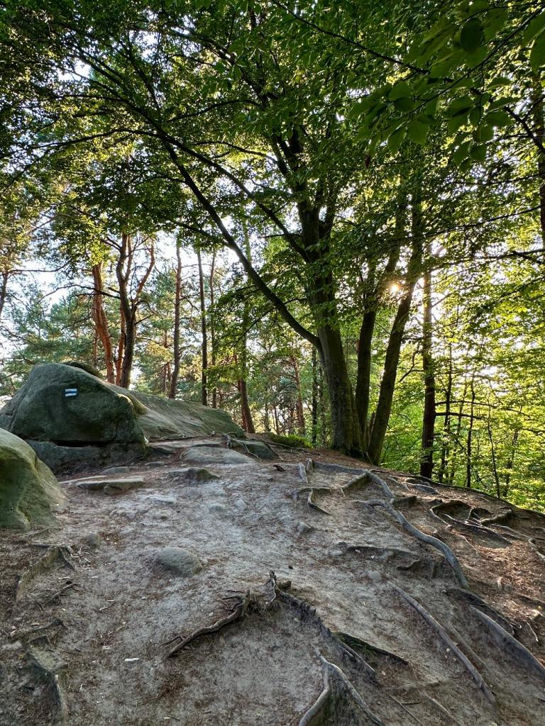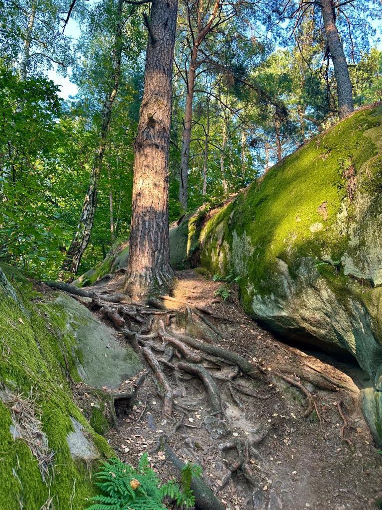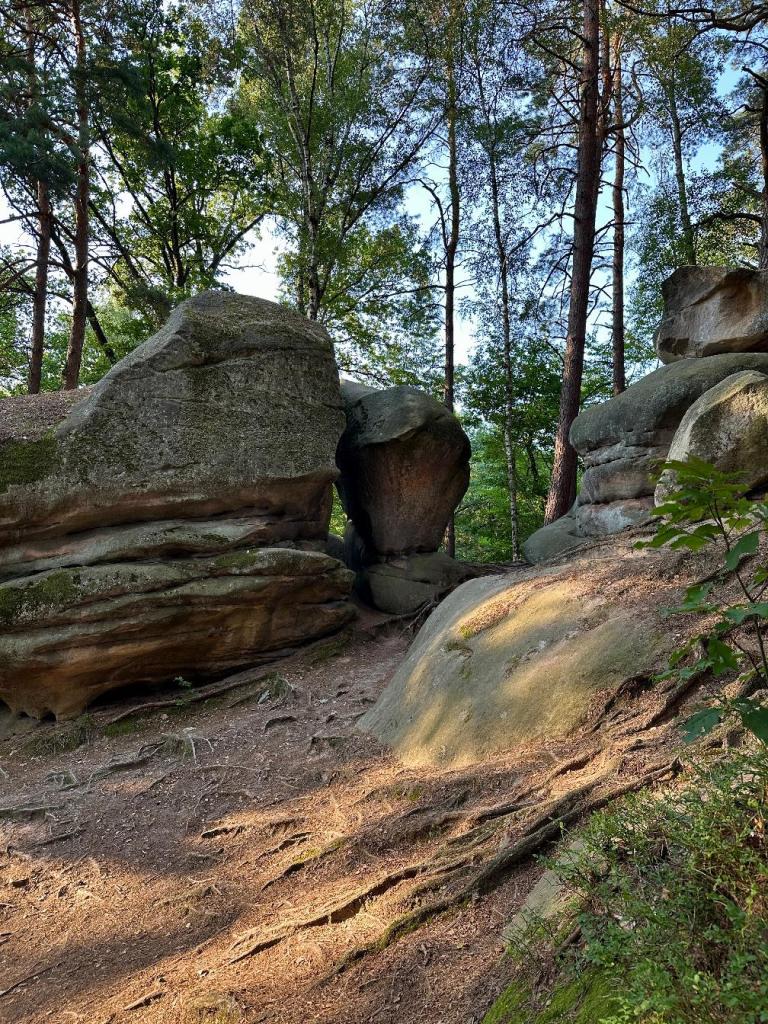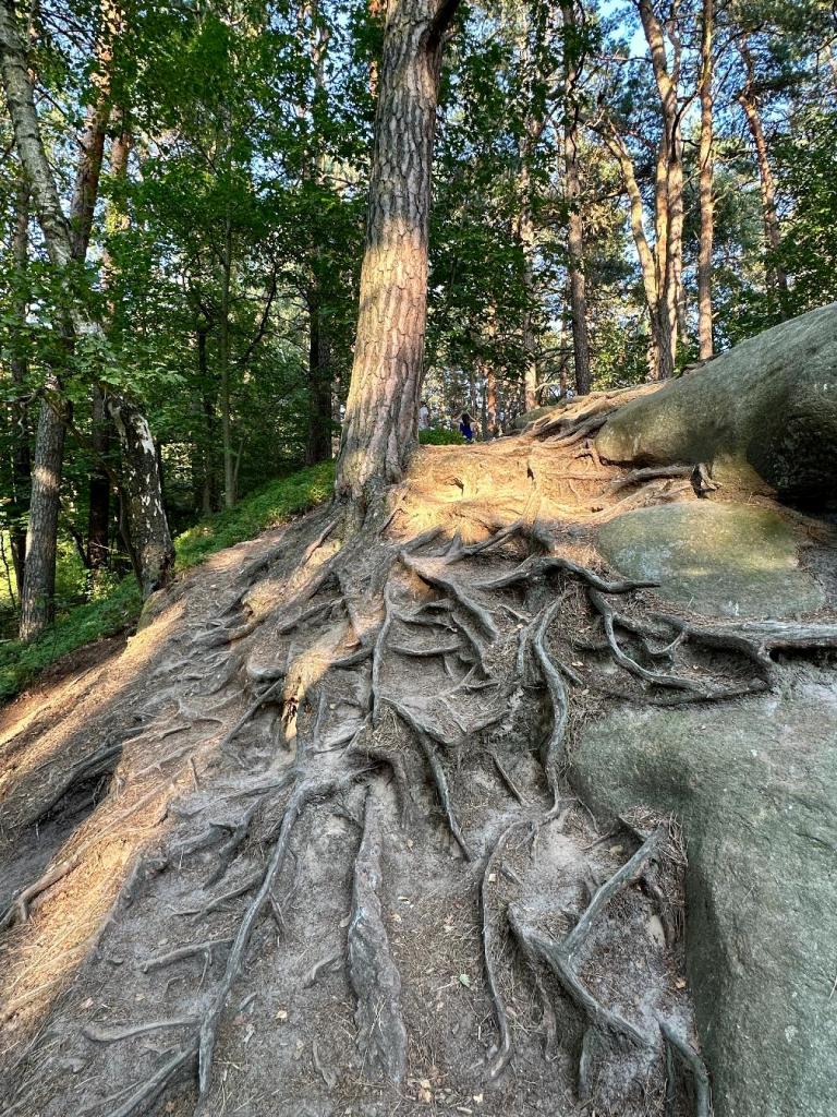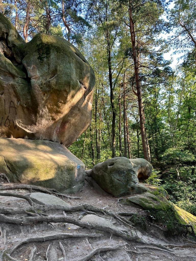 To raczej krótki spacer, choć miejscami podejścia po korzeniach potrafią zmęczyć. Część formacji dostępna jest niemal od parkingu, ale żeby zobaczyć więcej, trzeba się trochę powspinać.