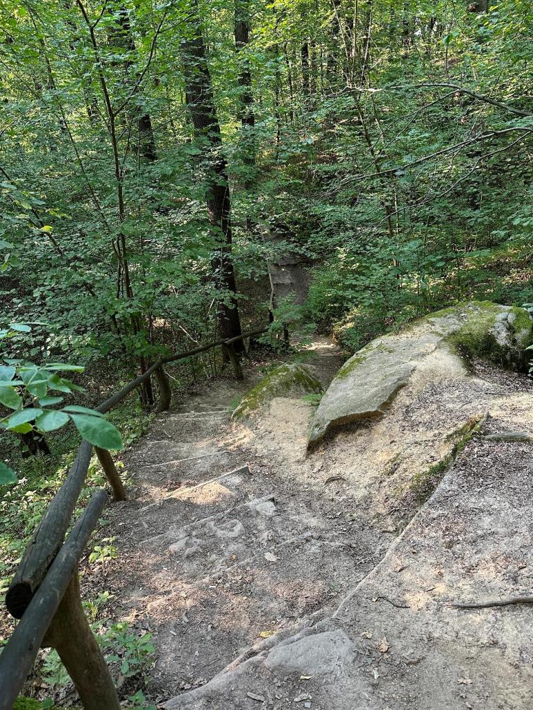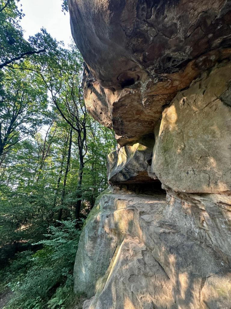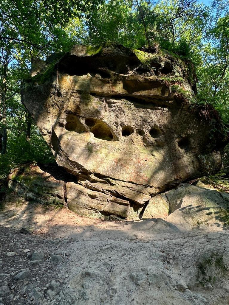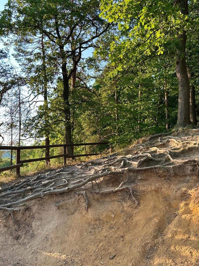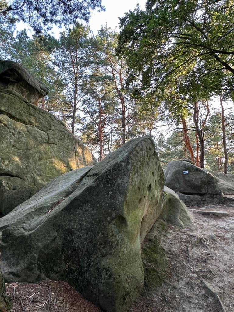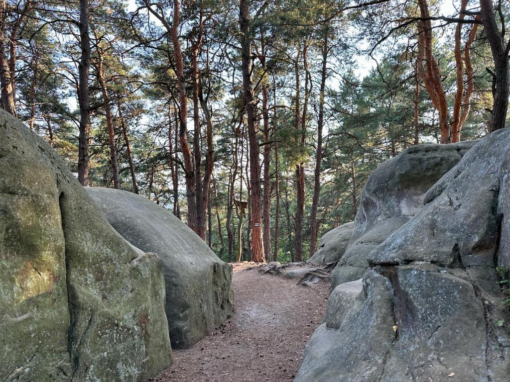 To raczej krótki spacer, choć miejscami podejścia po korzeniach potrafią zmęczyć. Część formacji dostępna jest niemal od parkingu, ale żeby zobaczyć więcej, trzeba się trochę powspinać.