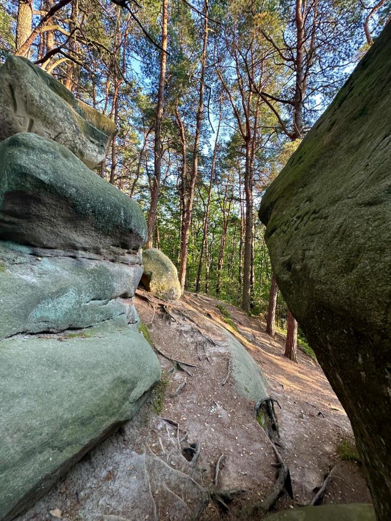 Krążymy dookoła skałek ciesząc się ich kształtami, robiąc zdjęcia przestajemy czuć upływ czasu. Obniżające się słońce wygląda do nas zza drzew.