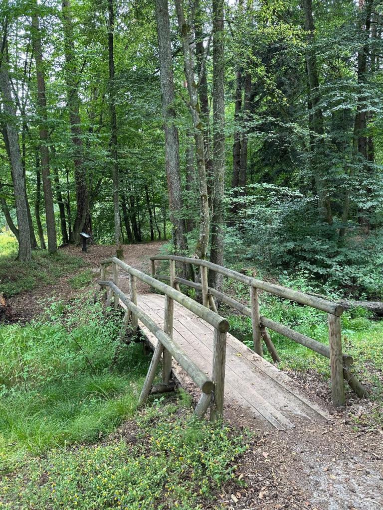 wzgórza nie znaleźliśmy, za to był las, mostki na rzece i staw