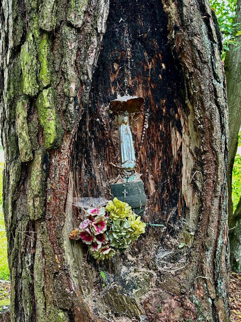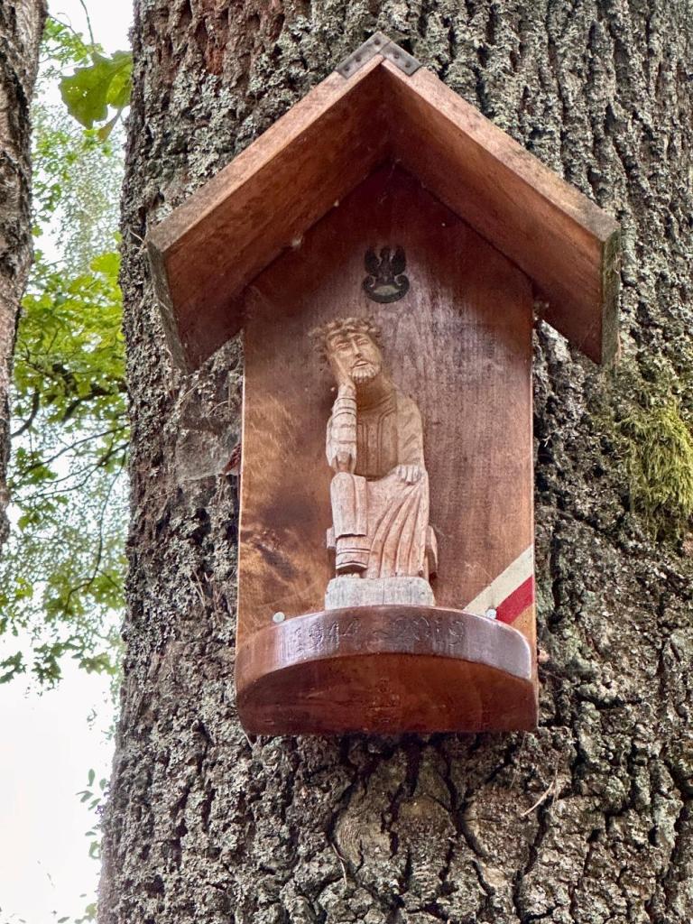 W pniu drzewa ktoś umieścił kapliczkę. Przystajemy ją obejrzeć.