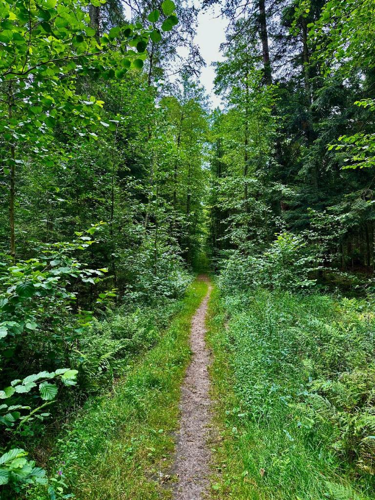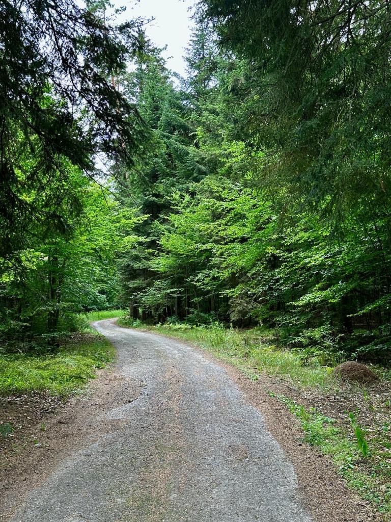 Ścieżka prowadzi na zniszczoną asfaltową drogę – wygodną do marszu. Po bokach jarzębina i mech, w lesie pojawiają się kolejne, bezimienne groby partyzanckie.