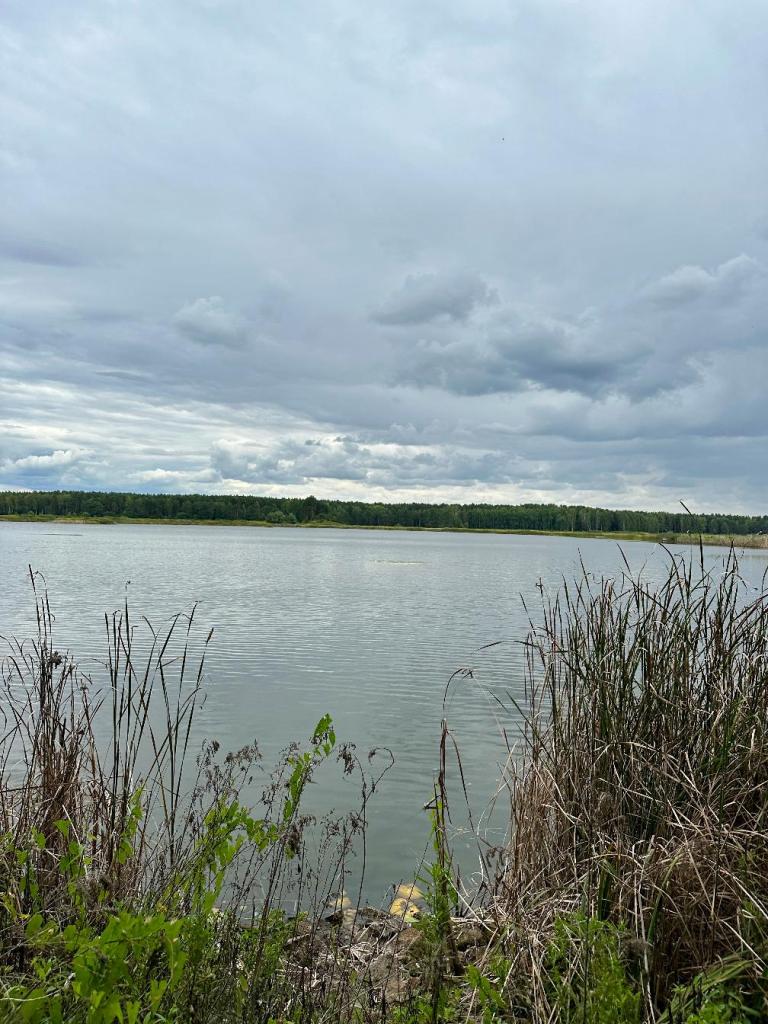 Las cichnie, a naszą uwagę przyciąga tafla wody połyskująca między pniami. Idziemy ku niej – i docieramy do stawu. Woda lekko faluje, odbijając pochmurne niebo.