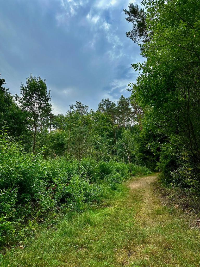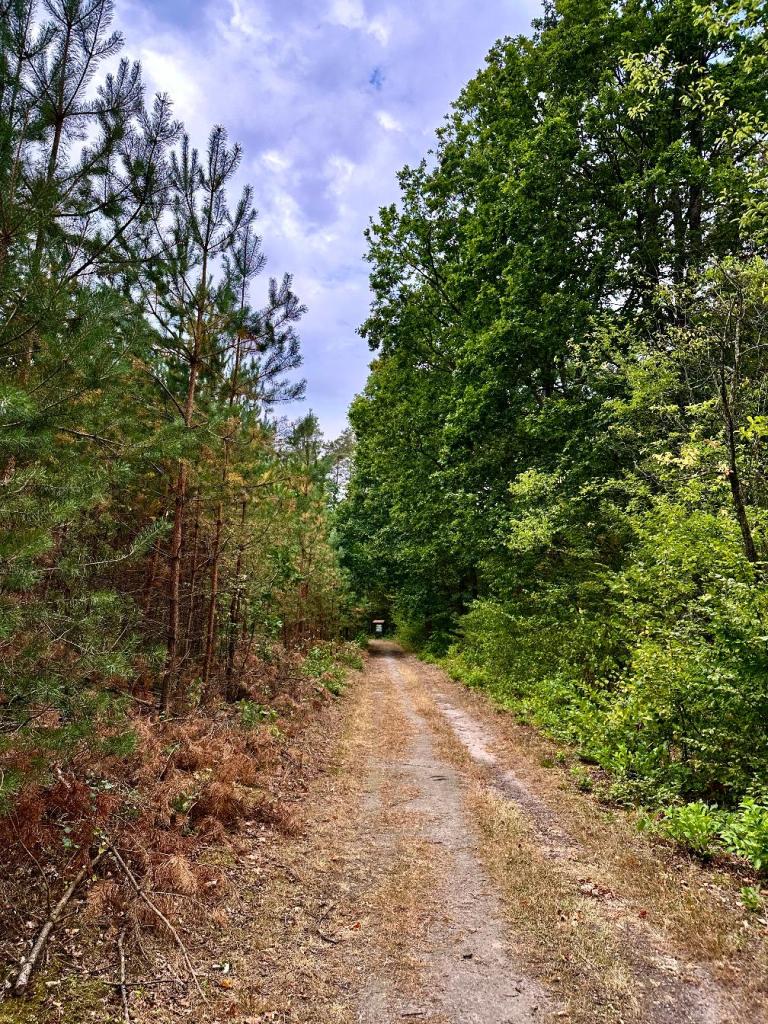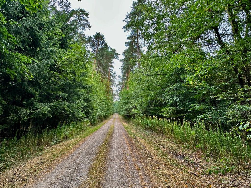 Pierwszy odcinek to szeroka droga leśna. Drzewa wciąż były intensywnie zielone, a delikatna mżawka unosiła zapach mokrej ziemi i igliwia. Choć wokół panował ruch, las sam w sobie dawał poczucie przyjemnej wilgoci i naturalnego chłodu.
