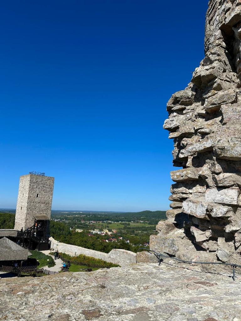 Na drugą, niższą wieżę weszliśmy dla kontrastu – była prostokątna, nieco mniej stroma i mniej zatłoczona. Tutaj można było w spokoju popatrzeć na zielone wzgórza. Po chwili poczuliśmy jednak przebodźcowanie – upał, stragany i tłum dały się we znaki, więc postanowiliśmy zmienić klimat i ruszyć w stronę rezerwatu.