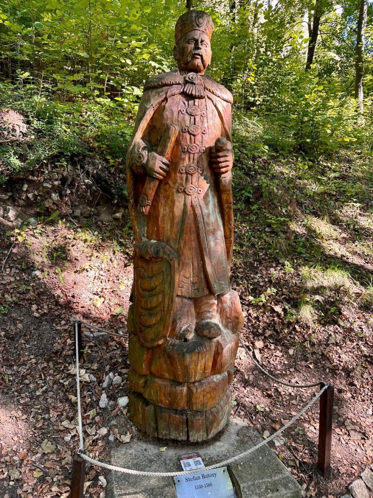 W parku zrobiło się przyjemniej – zieleń, zacienione alejki i ustawione wzdłuż ścieżki drewniane rzeźby królów ale też i innych ważnych postaci. Wypatrzyliśmy m.in. Czarnieckiego, Batorego, woja, ale kilku postaci, jak chociażby Łokietka, Jagiełły czy kata zabrakło. Była też królowa Bona Sforza.