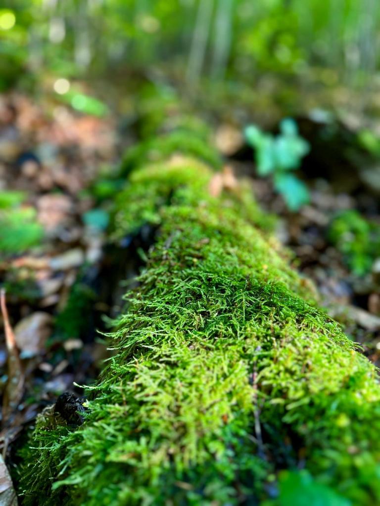 Nagle pośród zieleni pojawia się jasna, biała skała – formacja Dłoń. Jej kształt faktycznie przypomina kamienną rękę uniesioną ku górze. Pokryta mchem, wyraźnie wyróżnia się na tle otoczenia. Zatrzymujemy się na chwilę – takie miejsca działają na wyobraźnię.