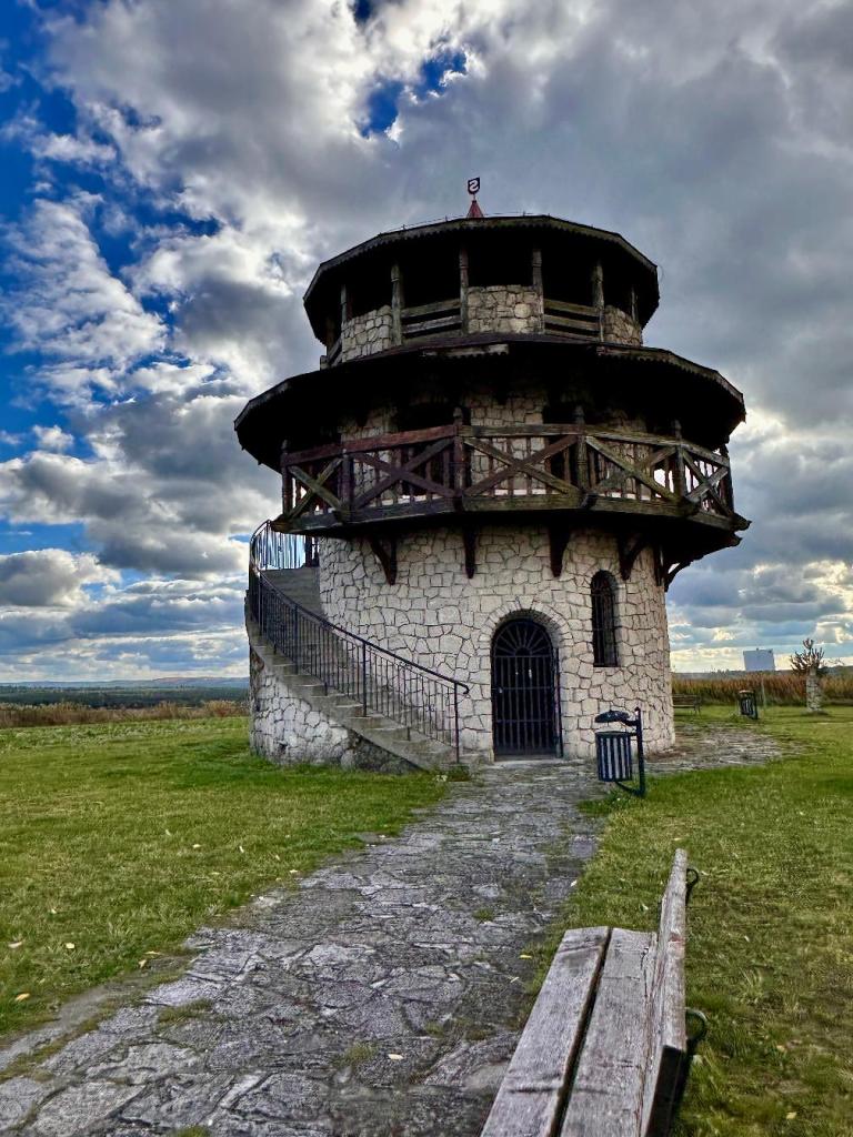 Po krótkim spacerze w Kamieniołomie w Nowinach postanawiamy zatrzymać się jeszcze na chwilę — dosłownie na małą, mikro wycieczkę. Cel? Wieża widokowa w Suścu. To niedługi przystanek, ale dobrze wpisuje się w chłodny, październikowy dzień, kiedy niebo jest ciężkie od chmur, a wiatr przypomina, że jesień już naprawdę przyszła.