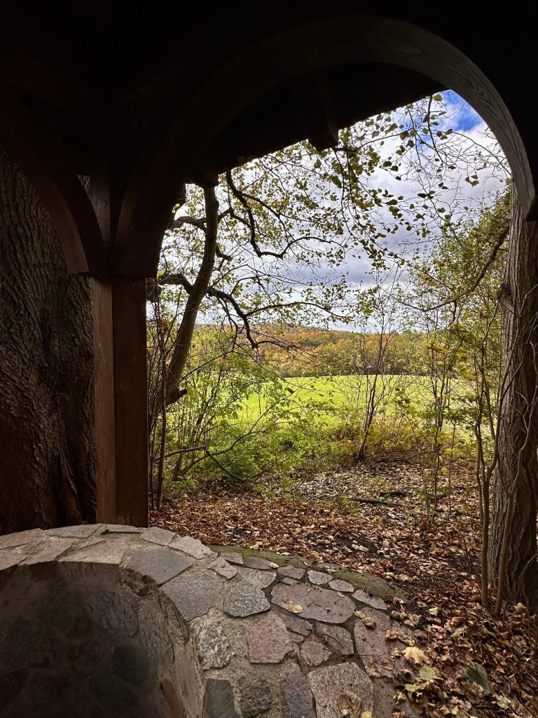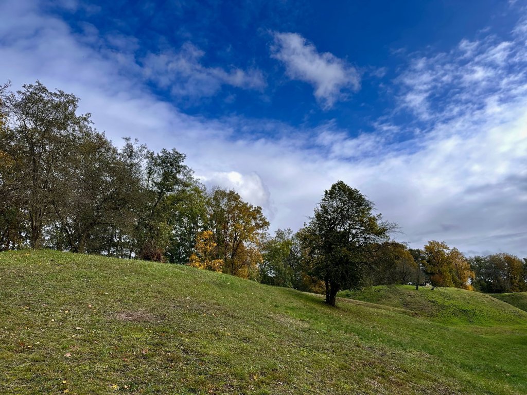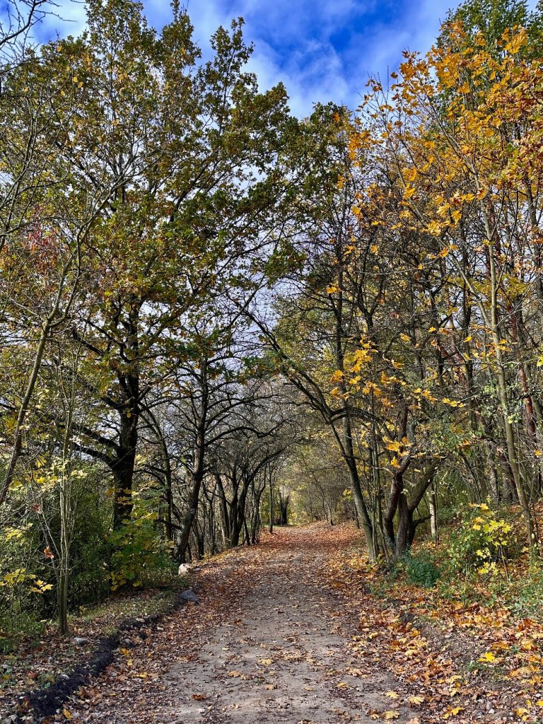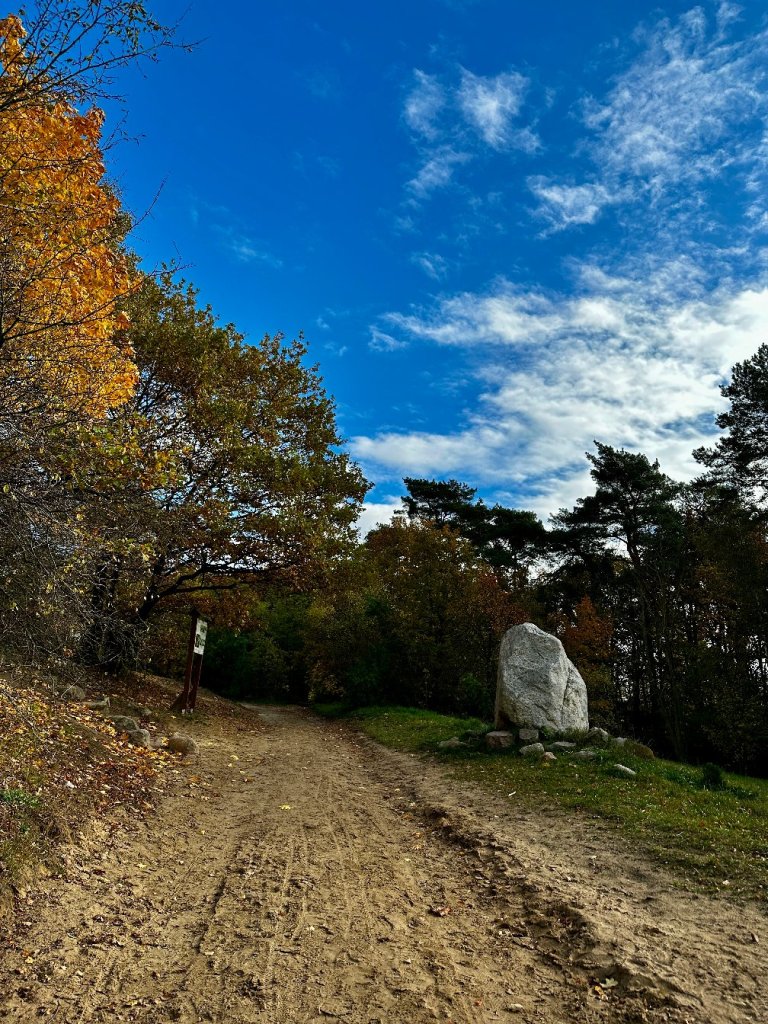 Tym razem ruszyliśmy ponownie na tropy lądolodu – dosłownie i symbolicznie. Chcieliśmy dokończyć brakujący fragment ścieżki edukacyjnej, której tabliczki widzieliśmy przy Jeziorze Góreckim i Górze Wyspowej. To końcówka października – chłodno, pochmurno i wietrznie, ale między chmurami co jakiś czas przebija się słońce.