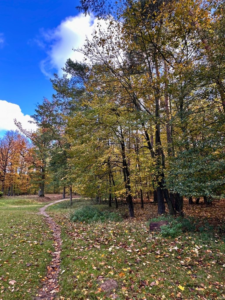 Zimno, wietrznie, ale słonecznie, to jedno z tych jesiennych niedzielnych przedpołudni, kiedy mimo chłodu chce się ruszyć z domu, pomimo, że na popołudnie zapowiadany jest deszcz. Jesteśmy w Puszczy Zielonka, w poszukiwaniu odrobiny relaksu i słońca w przerwie między deszczowymi dniami w Poznaniu.