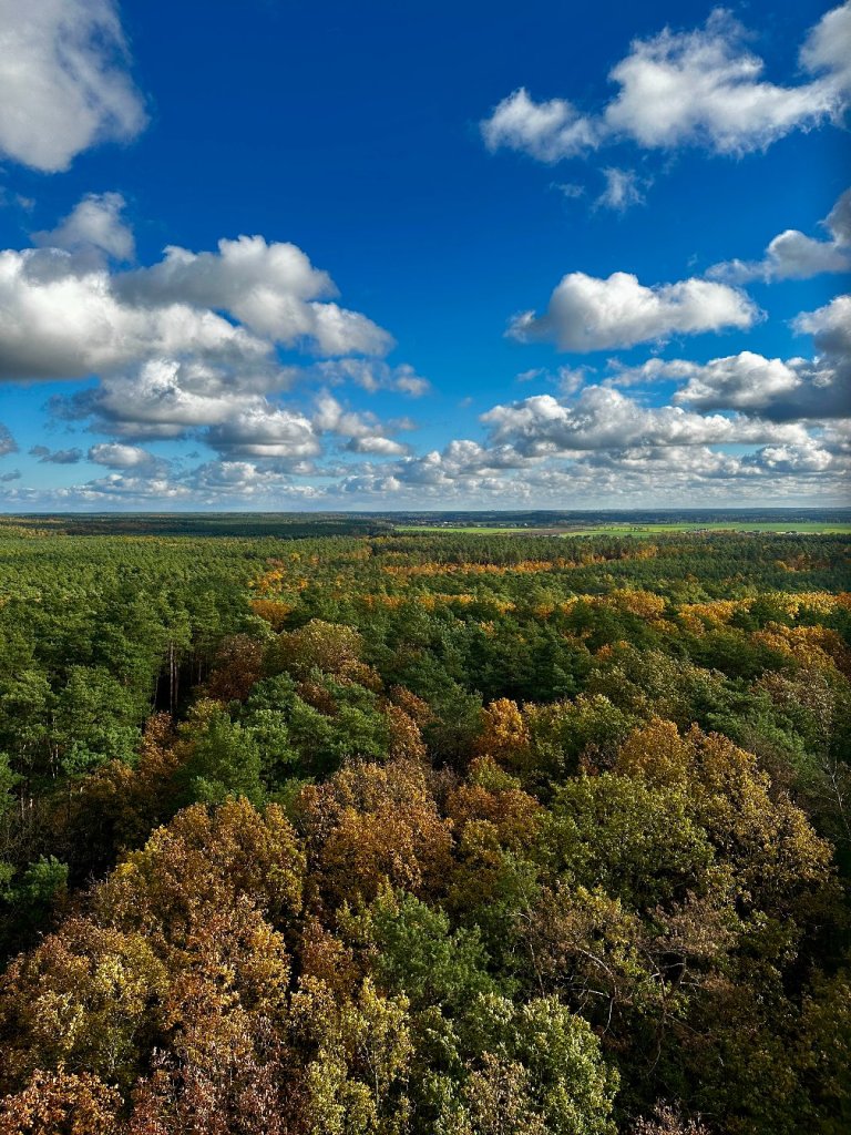 - Piękny, szeroki widok z wieży – lasy, pagórki i panorama Poznania.