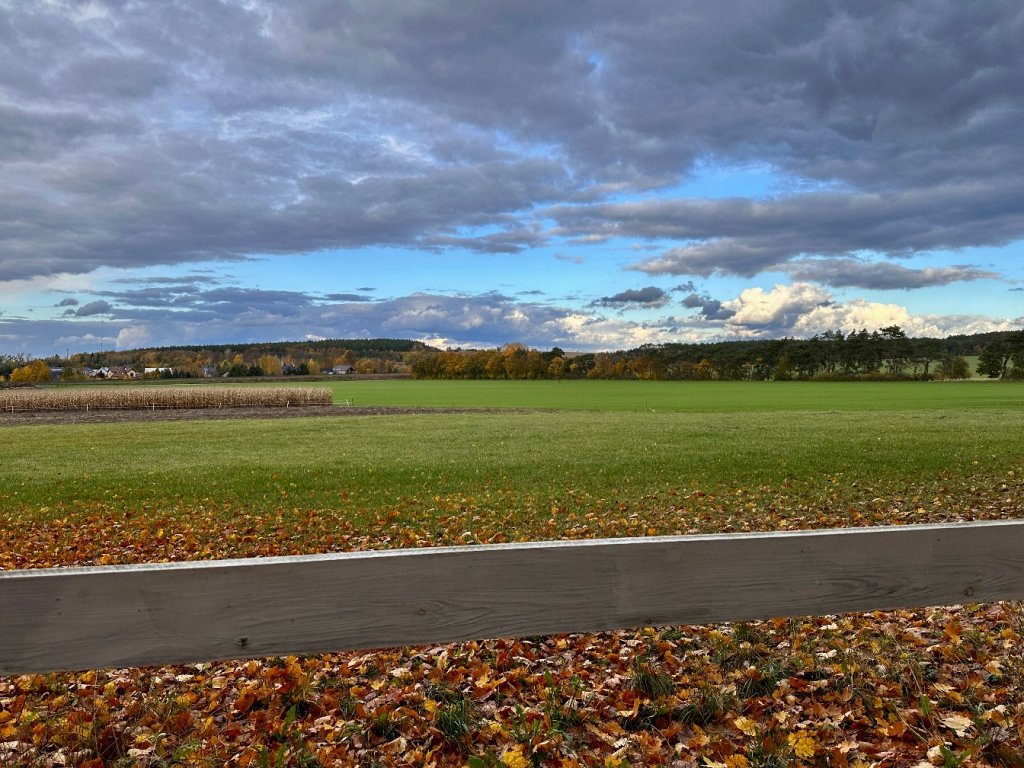 Zatrzymujemy się na parkingu przy Muzeum Narodowym Rolnictwa i Przemysłu Rolno-Spożywczego. Tuż obok są pola z tabliczkami edukacyjnymi – można dowiedzieć się m.in., jak uprawia się ziemniaki i że do Polski sprowadził je Jan III Sobieski. My jednak, zamiast w pole, ruszamy w przeciwnym kierunku – w stronę lasu i dawnej wieży Bierbaumów, do której prowadzi edukacyjna ścieżka przyrodnicza.
