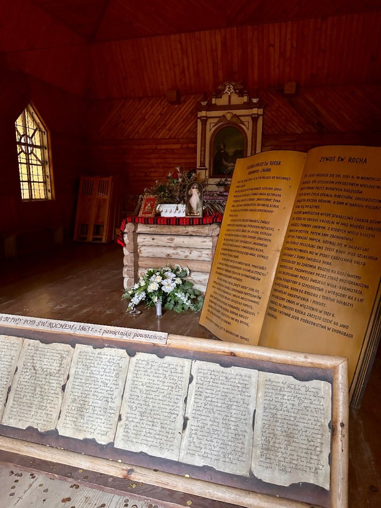Według legendy Święty Roch chronił mieszkańców przed zarazami, a woda spod kapliczki miała moc uzdrawiającą. Dziś miejsce to jest spokojne i ciche, idealne, by na chwilę zatrzymać się i po prostu odetchnąć.