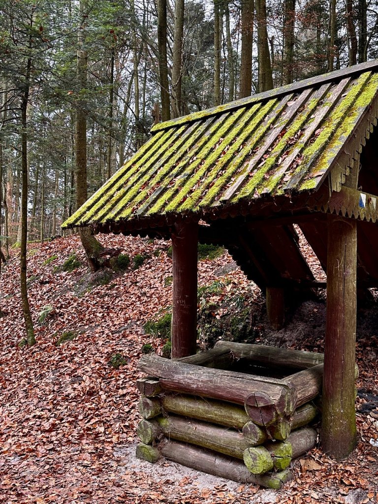 Do kapliczki z przeciwnej strony prowadzą niższe schody oraz podjazd, a sama droga jest bardziej wypłaszczona i przyjazna mniej sprawnym turystom. Są ławeczki, wiata ze studnią, ale nie zastaliśmy w niej wody.
