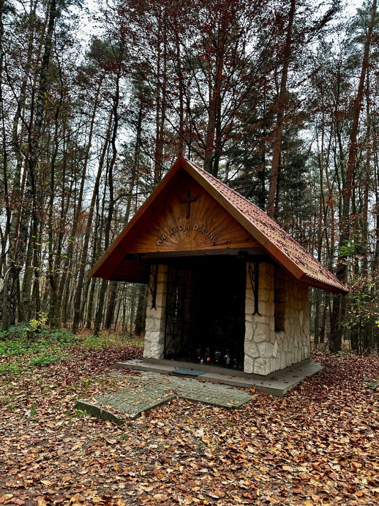 Niedaleko stąd w lesie znajduje się kapliczka pod Hutkami, z ciekawą, choć nieco mroczną historią przestrzelonego wizerunku Matki Boskiej. Tym razem tylko tam zaglądamy, ale chętnie wrócimy w cieplejszy dzień, by przyjrzeć się temu miejscu bliżej.