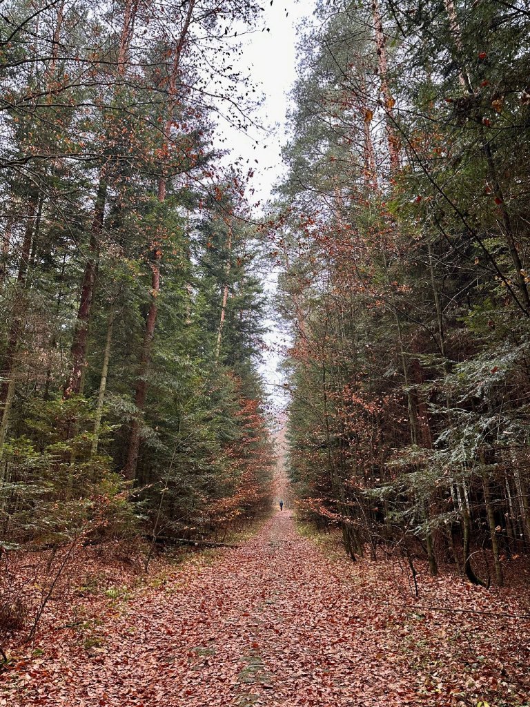 To był raczej spacer niż wyzwanie, krótka, spokojna trasa wśród starych drzew, z kilkoma podejściami, ale bez trudnych odcinków. Warunki pogodowe sprawiły, że było chłodno, mgliście i dość mokro, ale też wyjątkowo cicho. Nie spotkaliśmy prawie nikogo, co dodało tej wędrówce specjalnego klimatu.